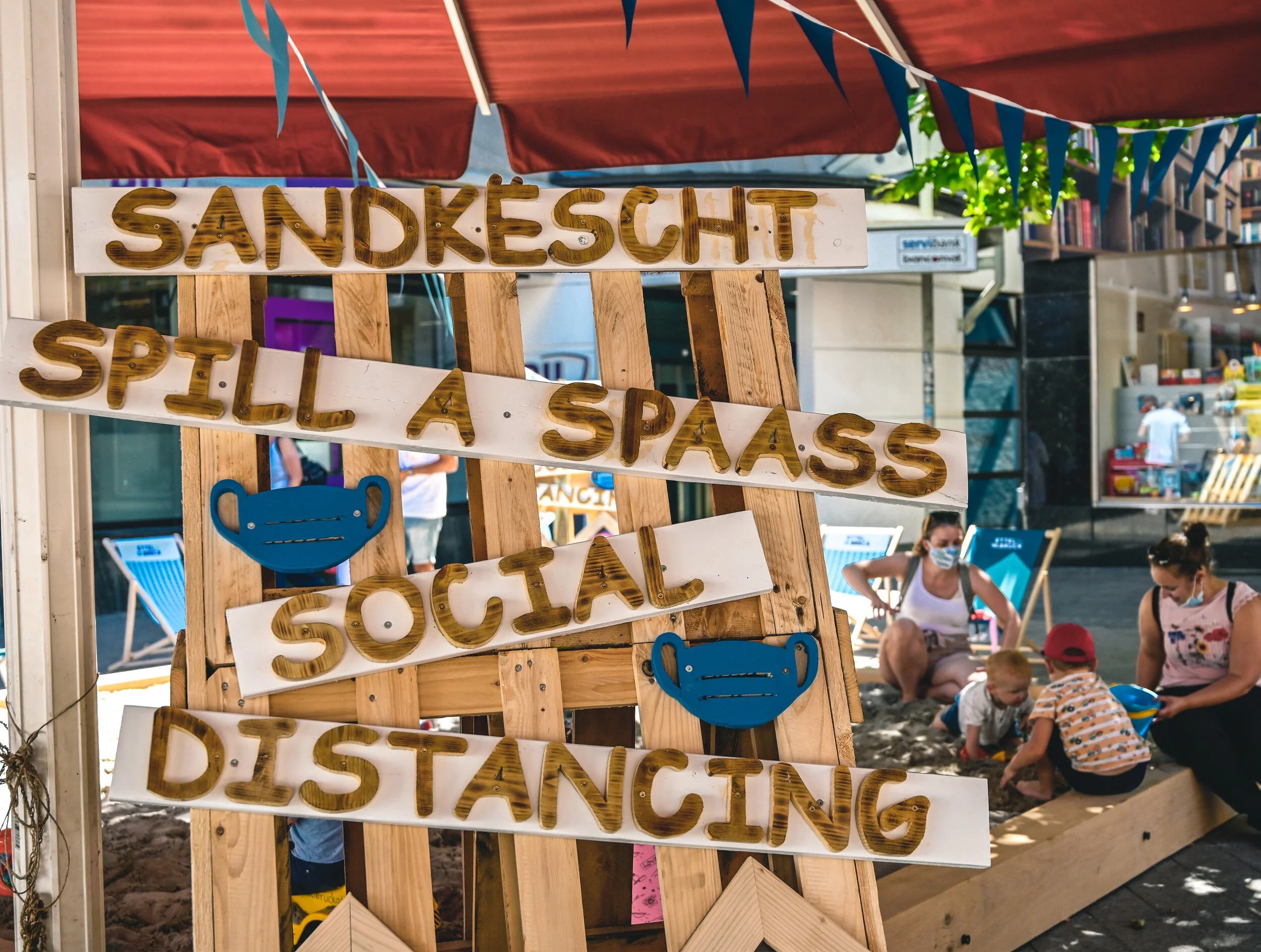 Vakanz Doheem. Och zu Ettelbréck. Fir de Mount August hunn d’Gemengeservicer, de Projet Arcade an den Ettelbruck City Tourist Office eng Sandkëscht op der “Place Guillaume” opgebaut an ënnerhalen fir esou de jonke Visiteuren eng Méiglechkeet ze ginn an der Stad am Sand ze spillen.